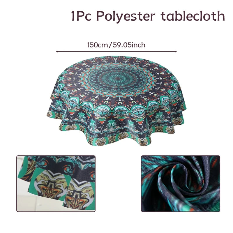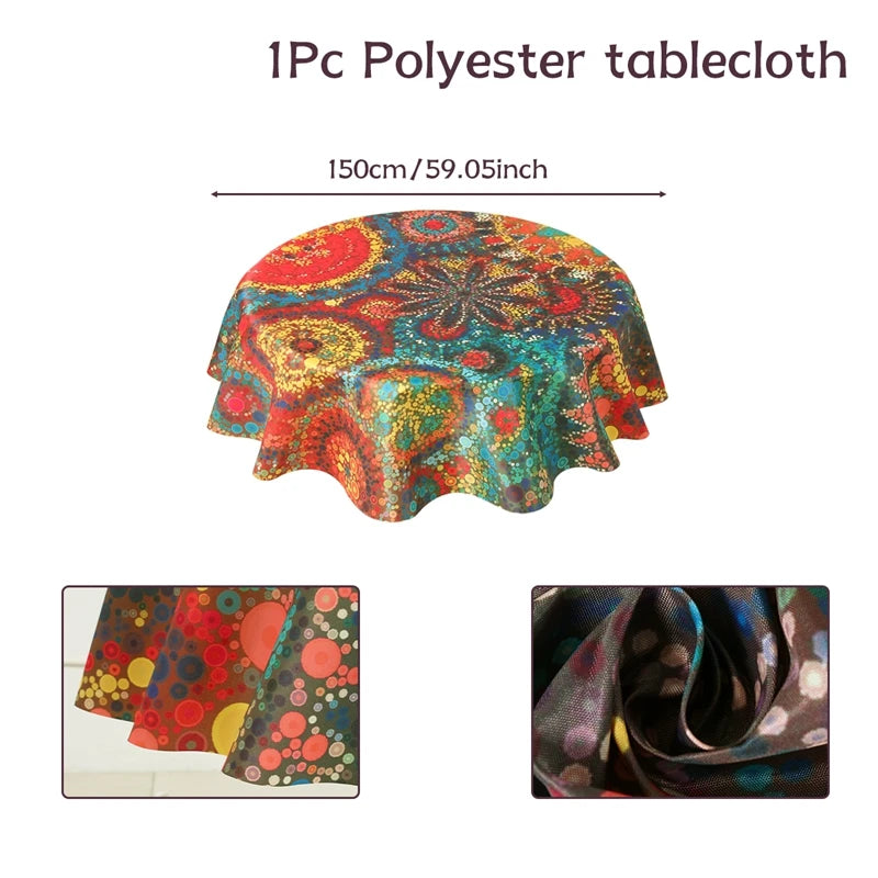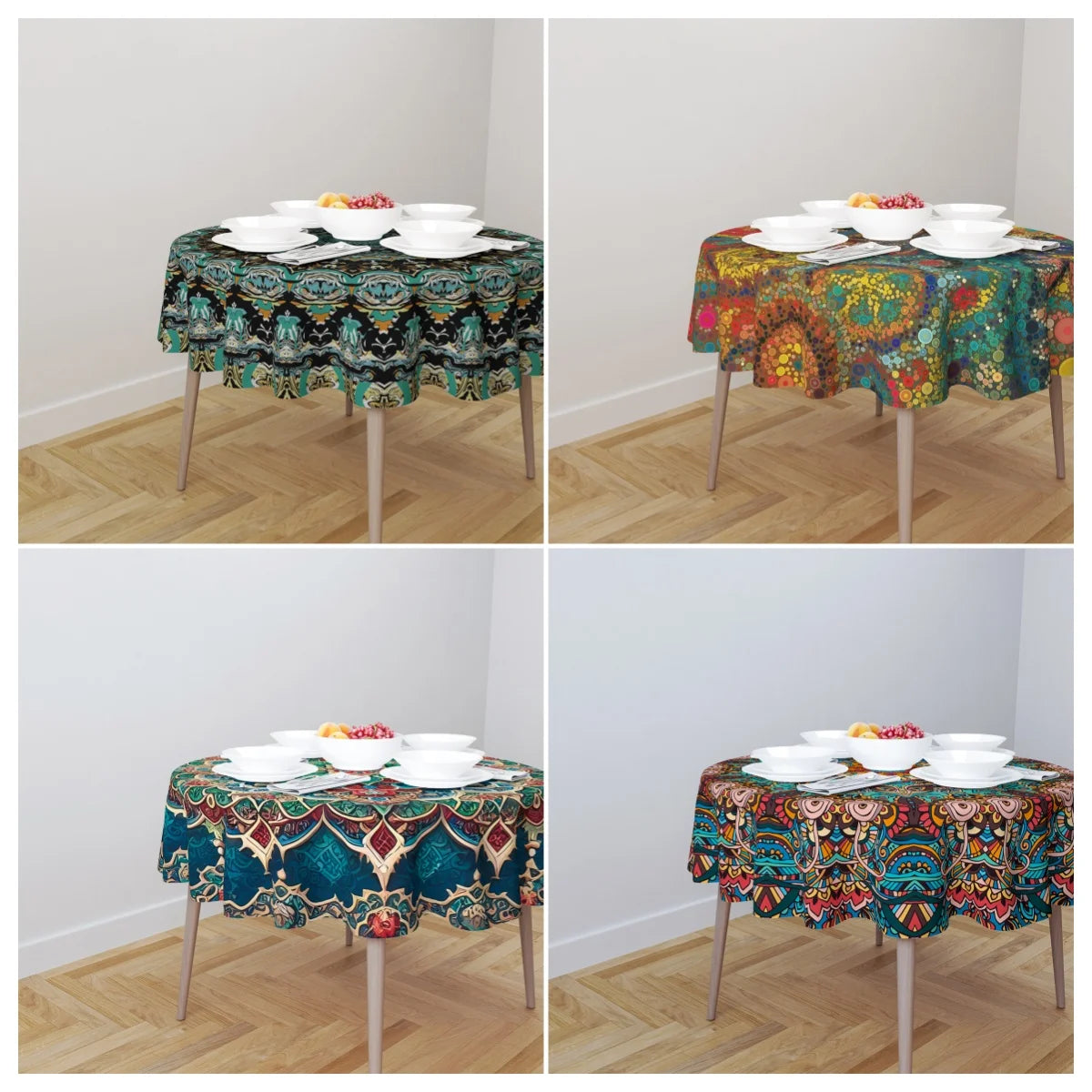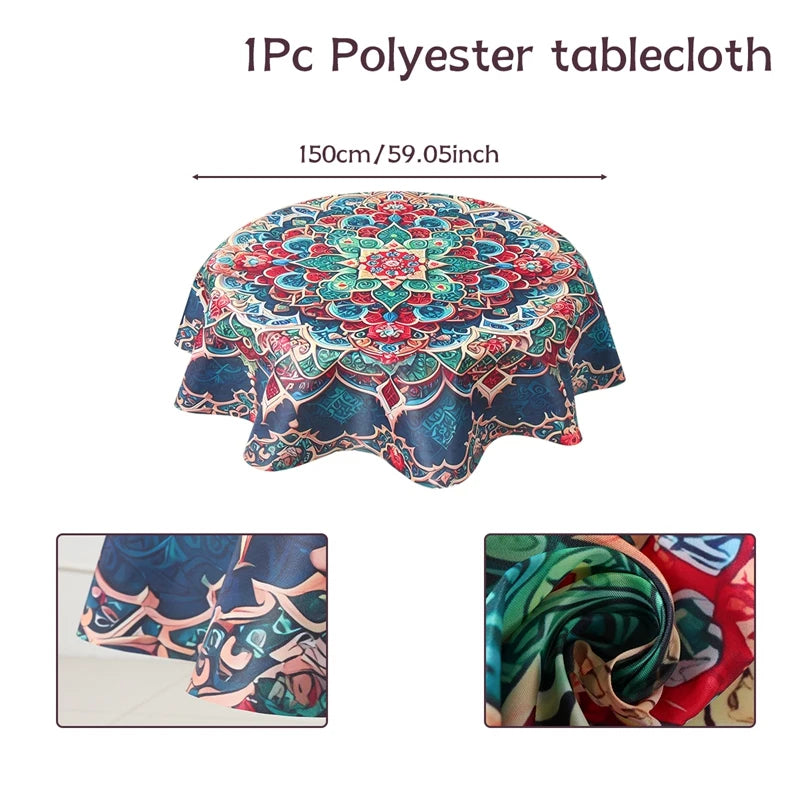 Recevoir famille et amis prend une dimension nouvelle avec une table joliment dressée. Cette nappe circulaire de 150 cm crée instantanément un cadre convivial qui invite au partage. Son design bohème évoque les voyages et l'évasion, devenant naturellement un sujet de conversation. Avant, vos repas étaient simplement des moments pour se nourrir . Désormais, ils se transforment en véritables expériences sensorielles où la beauté de votre table participe au plaisir de l'instant.
