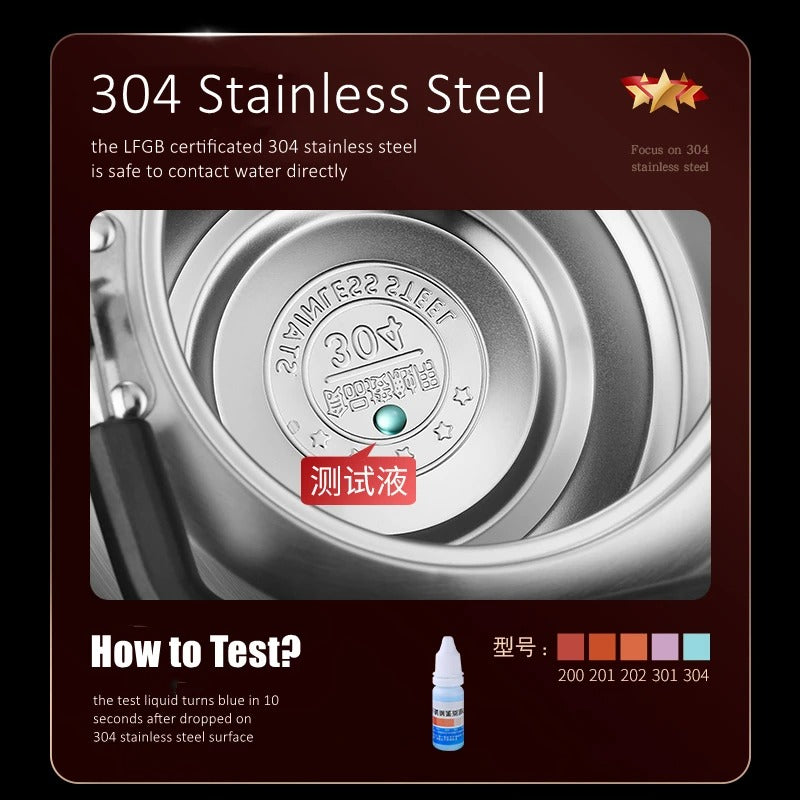 - Acier inoxydable 304 pur, certifié sans substances nocives