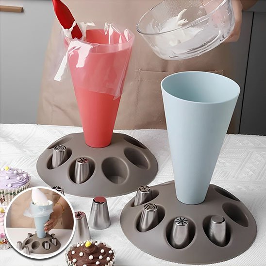 Imaginez-vous en train de décorer un gâteau avec précision et élégance. Notre socle de poche à douille en silicone vous offre cette liberté créative que vous recherchez depuis longtemps. Ce socle de poche à douille allie robustesse et flexibilité pour transformer vos créations pâtissières en véritables œuvres d'art. Sa conception réfléchie répond aux besoins des amateurs comme des professionnels. Sa stabilité, grâce à son socle, permet de remplir vos poches sans dégât et y insérer vos douilles nécessaire pour la décoration du moment.