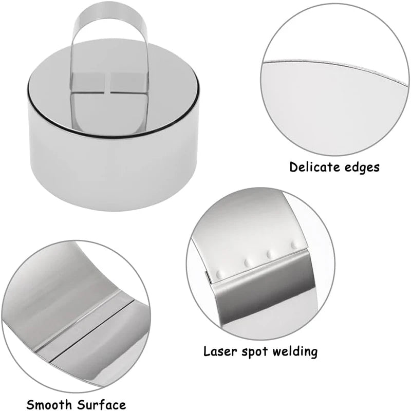 Le design innovant de notre moule à gâteaux rond inclut un poussoir intégré, offrant une polyvalence incomparable. Ce système ingénieux vous permet de réaliser facilement des gâteaux en couches, des mousses parfaitement formées, des pâtisseries élaborées, des rouleaux de riz et de légumes, et même des plats froids retenus.